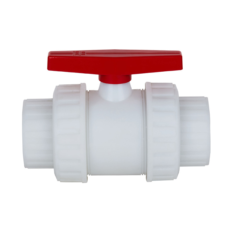 สีเหลืองเอิร์ธโทนขนาดที่กำหนดเองอุณหภูมิปานกลาง FRPP True Union Socket Ball Valve, วาล์วน้ำอุตสาหกรรมพลาสติกที่ทนทานแบบแมนนวล