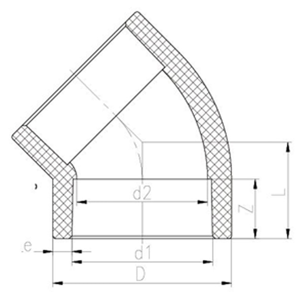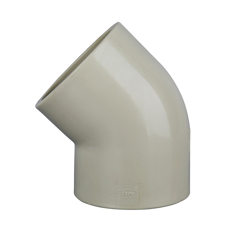 เครื่องละลายสีเหลืองเอิร์ธโทนที่ทนทานเป็นพิเศษ 45 °โครงสร้างรูปร่างเหมือนกันขนาดมาตรฐานทั่วไป DN15-100 อุปกรณ์ท่อพลาสติก PPH 45 °