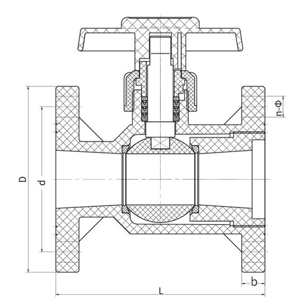 FRPP/Rpp รูปแบบร่างกาย DN15-DN100 บอลวาล์วตรงผ่านประเภทอุณหภูมิสูงพลาสติกแปลนบอลวาล์วคงที่สำหรับการใช้น้ำอุตสาหกรรม