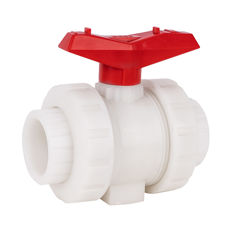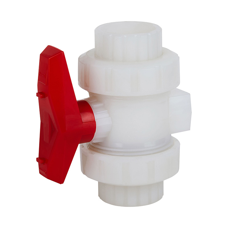 สีขาว 20 มม.-110 มม.อุณหภูมิ Super ทนทานมาตรฐาน PVDF Double Union Socket Ball Valve 1.0-1.6Mpa ISO STD มาตรฐานอุตสาหกรรมวาล์วพลาสติก