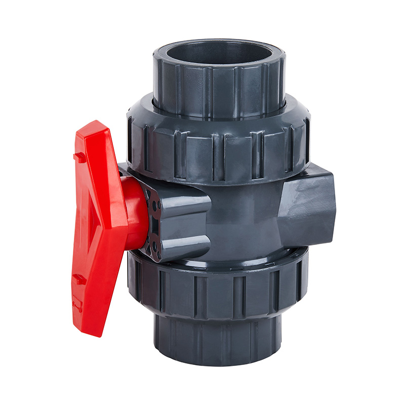 Custom DN15 DN80 DN100 อุณหภูมิปานกลาง PVC-U true double-union socket ball วาล์วอุณหภูมิปานกลางด้วยตนเอง DN15-100 1.0-1.6Mpa อุตสาหกรรมพลาสติกวาล์ว