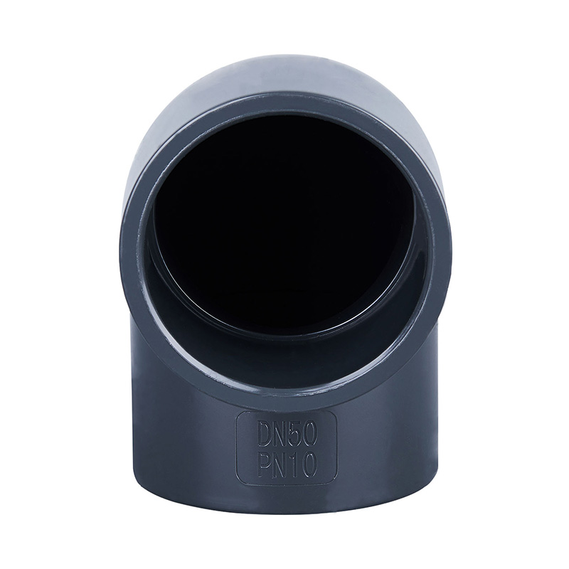 PVC-U สีม่วงเข้มคุณภาพสูง 90° รูปมาตราส่วน DN15-DN600 1.0-1.6 MPa ระบบควบคุมท่อพลาสติกพิเศษสำหรับอุตสาหกรรมเคมีและน้ำ